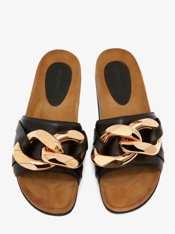 New this season and to join the chain loafer family are these summer slides. Offered in a variety of colours and materials, they are sure to complete any look.
