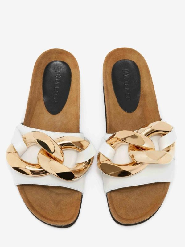 New this season and to join the chain loafer family are these summer slides. Offered in a variety of colours and materials, they are sure to complete any look.