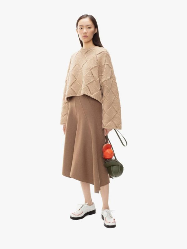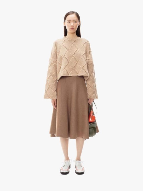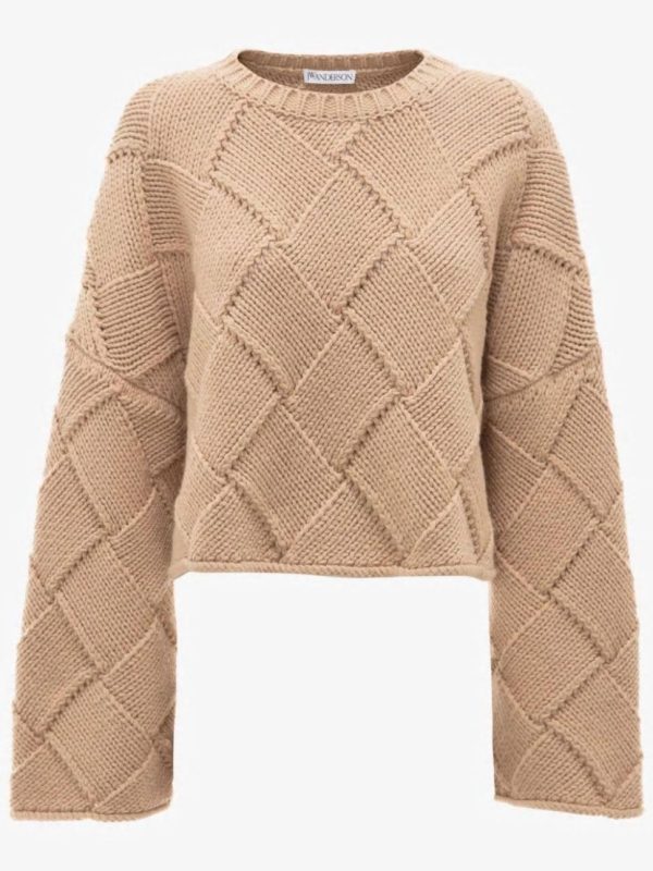 JW Anderson Cropped Oversize Crewneck Tan | Women Knitwear